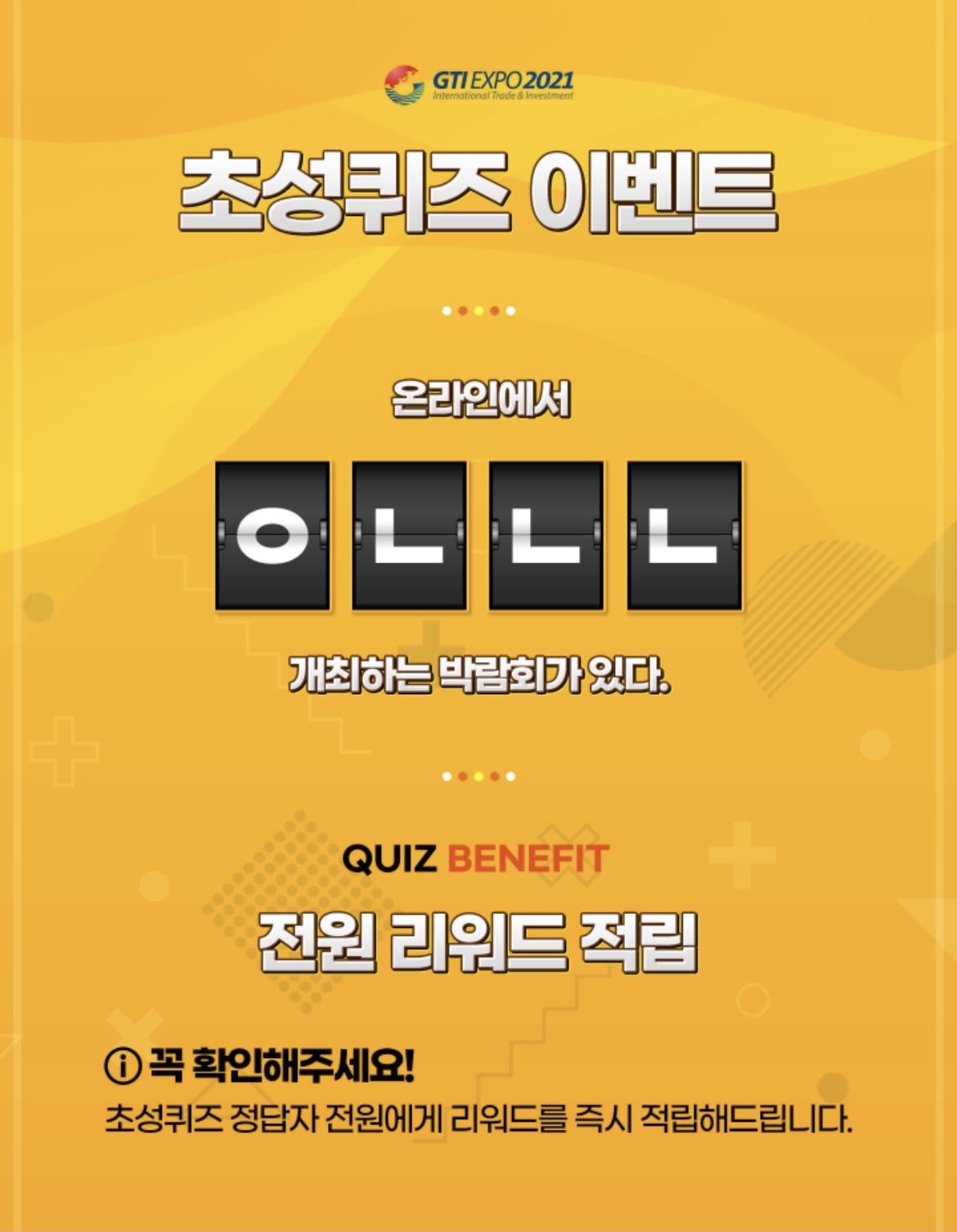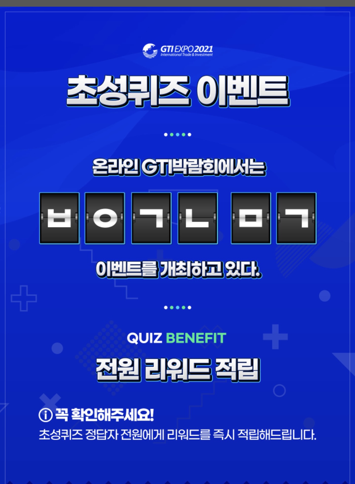 초성퀴즈 정답자 전원에게 리워드를 즉시 적립해드립니다