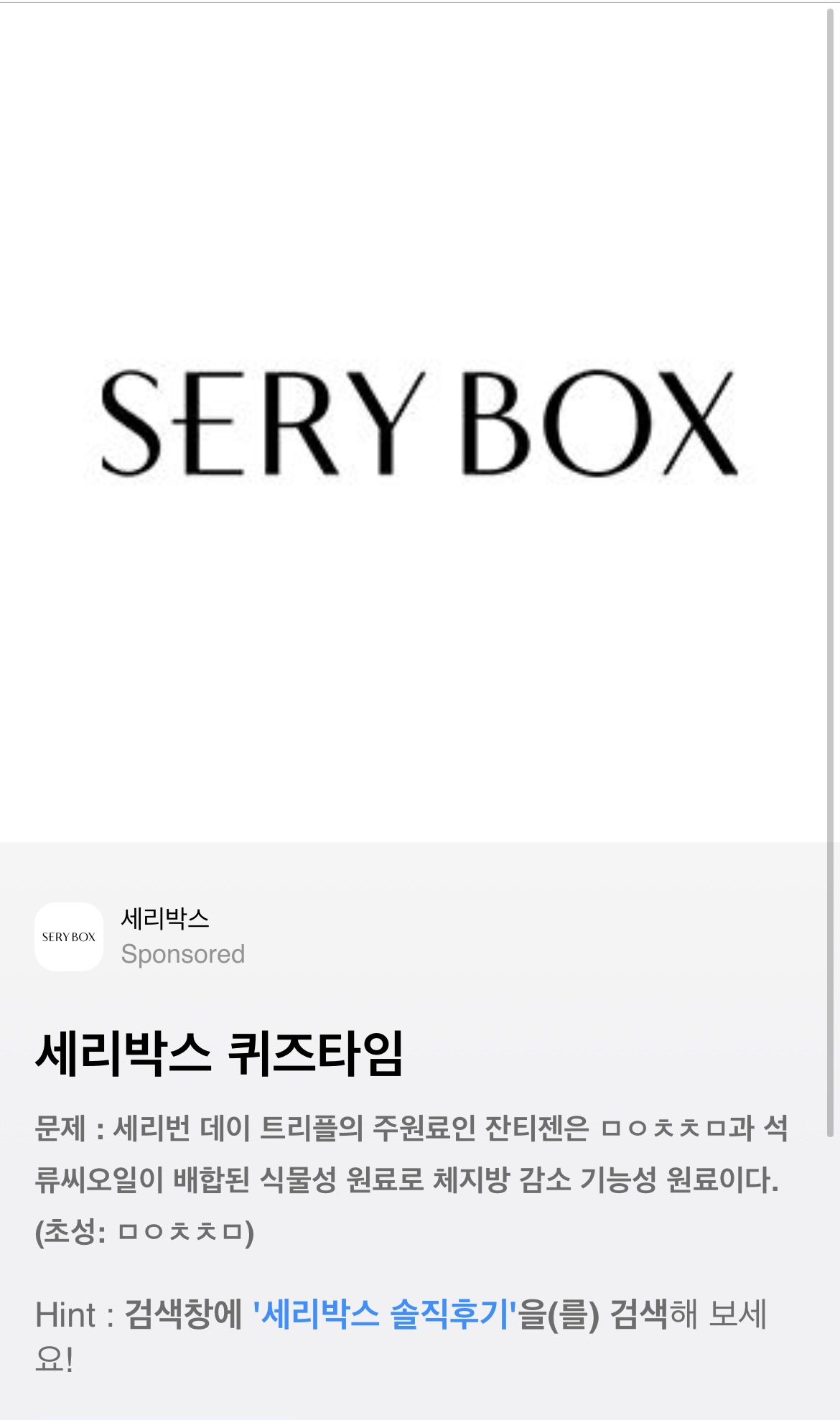 Hint : 검색창에 '세리박스 솔직후기'을(를) 검색해 보세요!