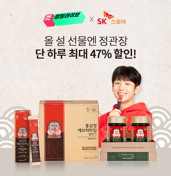 문제 : 지금 겟썸띵라이브에서 정관장을 최대 47% 특가에 가져가세요!