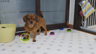 강아지가 원하는 것들을 녹음시켜 버튼을 누르게 하는 것이에요.