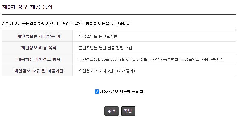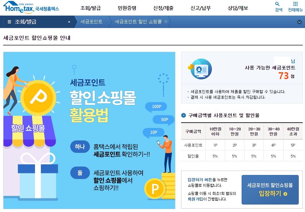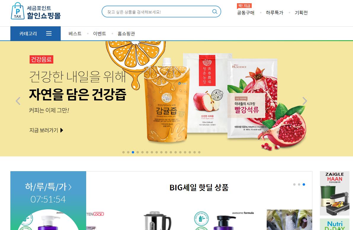 쇼핑몰을 들어가면 세금포인트 할인 쇼핑몰이라고 나오네요.