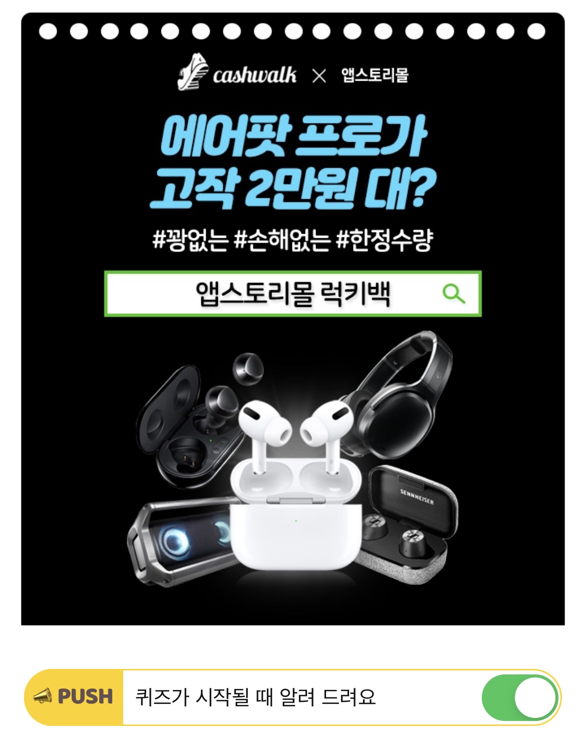 퀴즈풀고 캐시도 같이 적립해봐요.