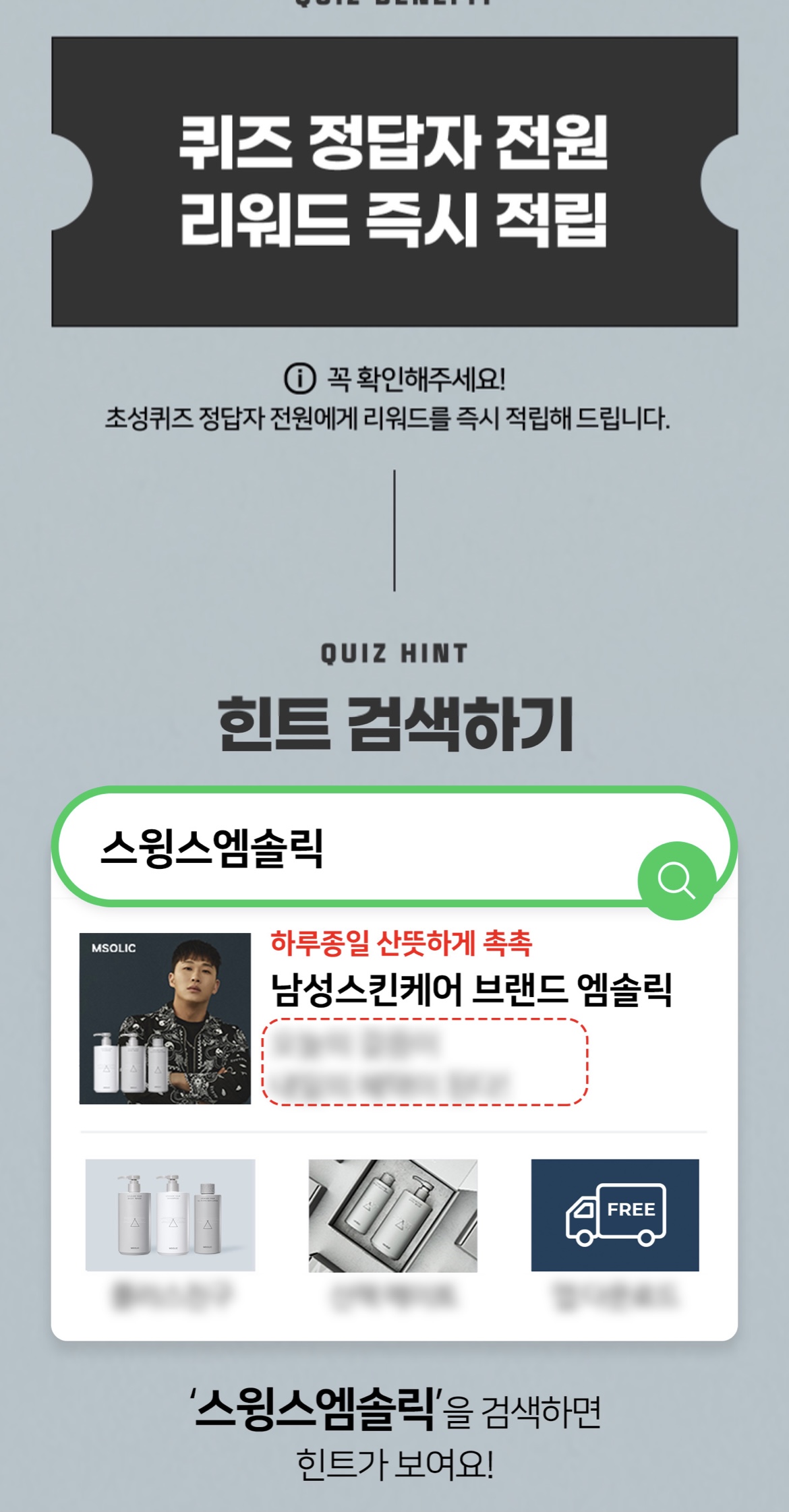 정답자 전원 리워드 즉시 적립