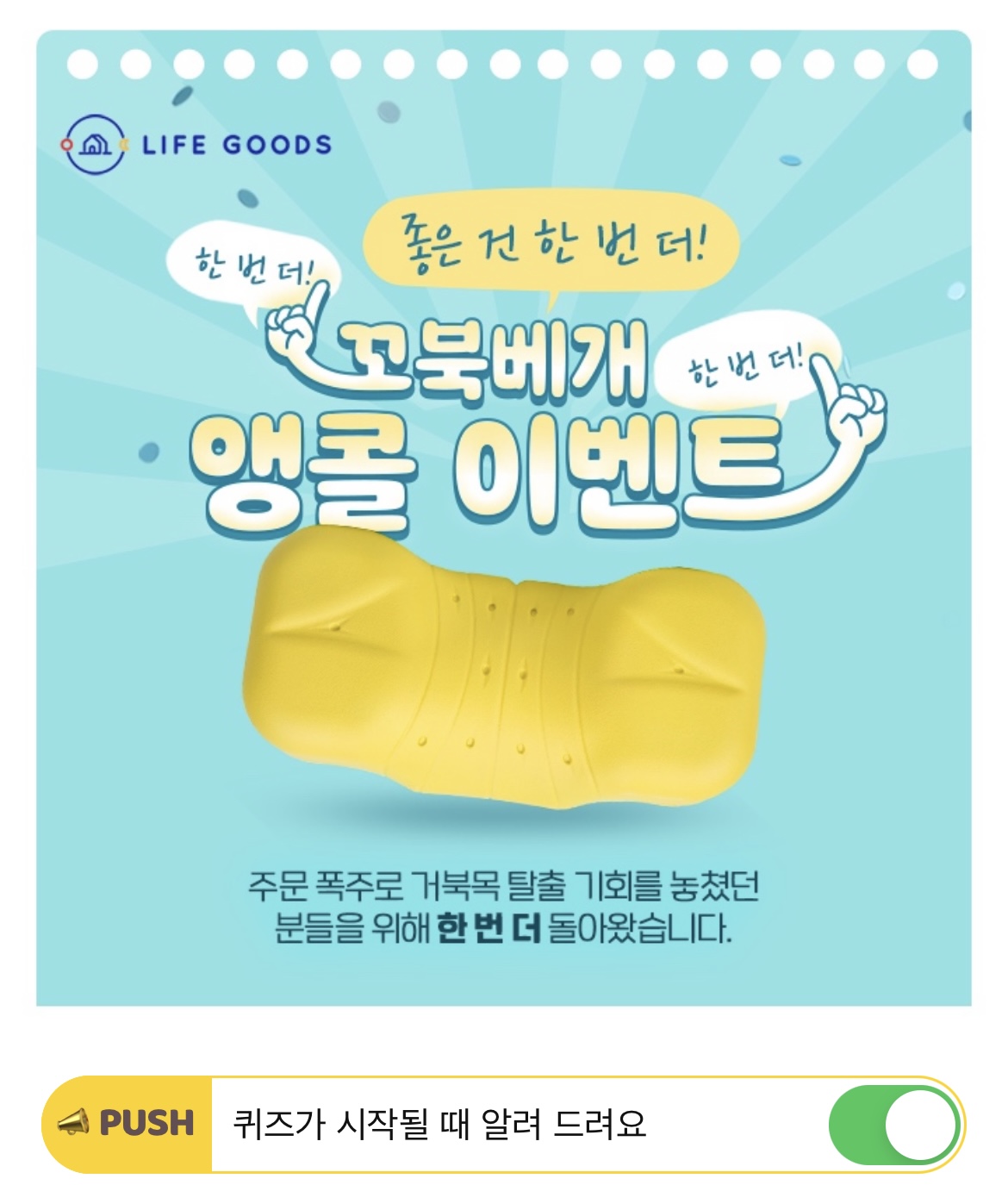 꼬북베개는 바로누웠을 때 곡선을 유지하고, 옆으로 누웠을때 OO 유지 할 수 있습니다. 빈칸에 들어간 단어는 무엇일까요? (힌트 : ㅇㅈ)