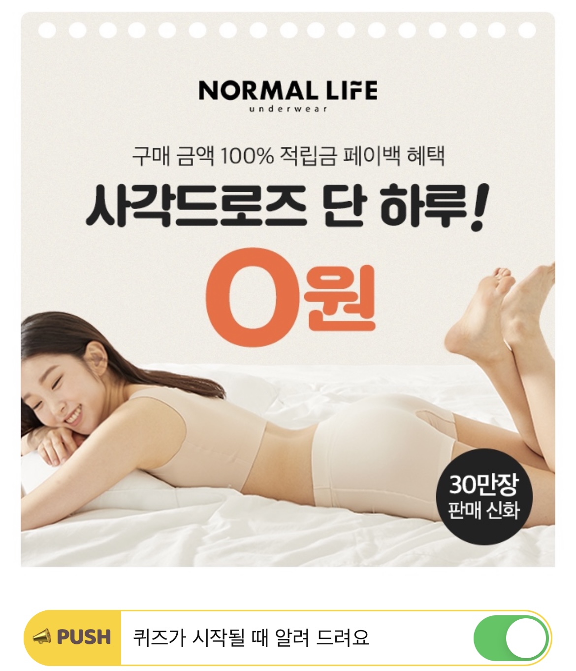 노멀라이프 여성 사각 드로즈는 많은 분들의 관심속에 현재까지 OO 만장이 판매되었습니다. 여기서, OO에 들어갈 숫자는 무엇일까요?