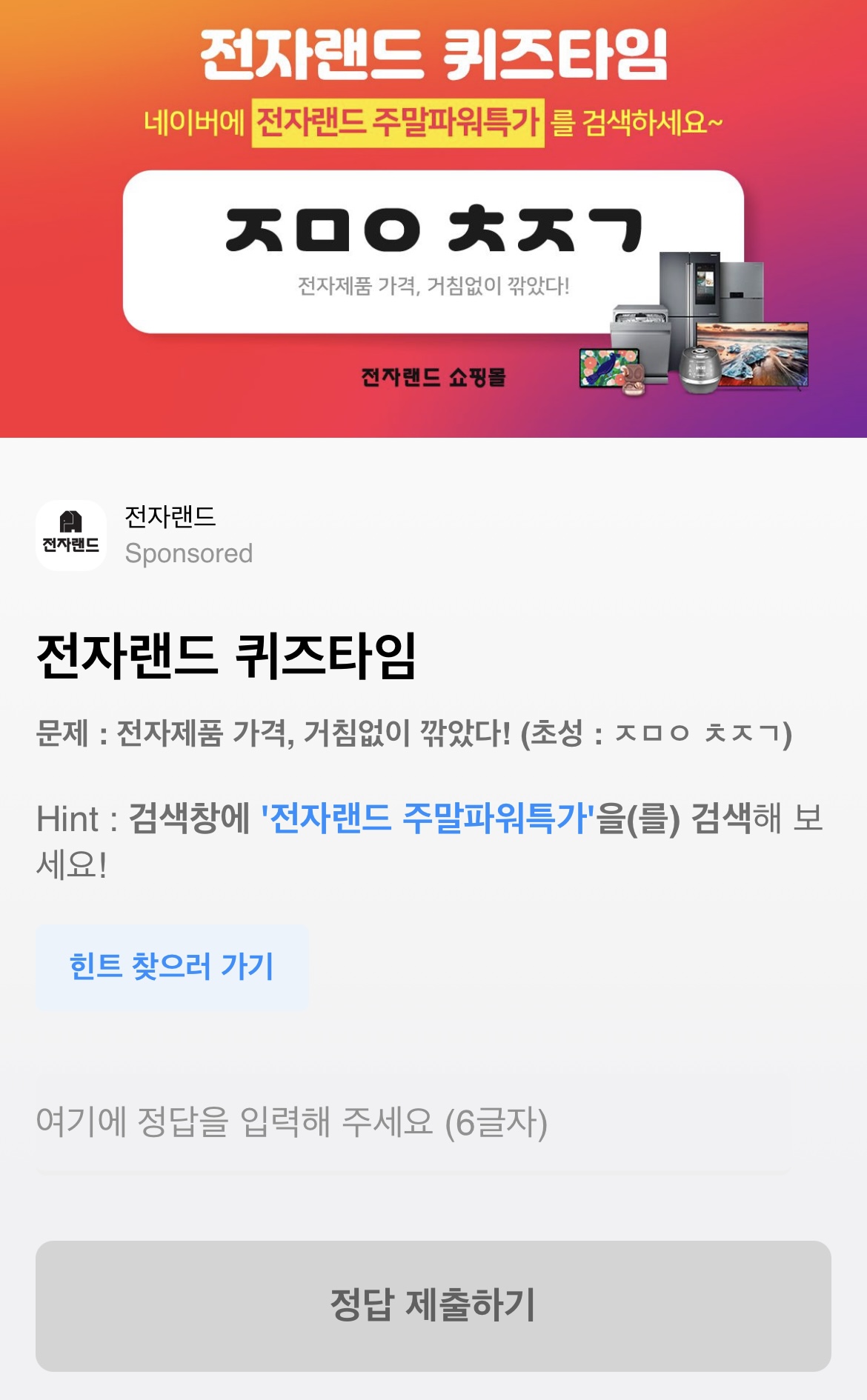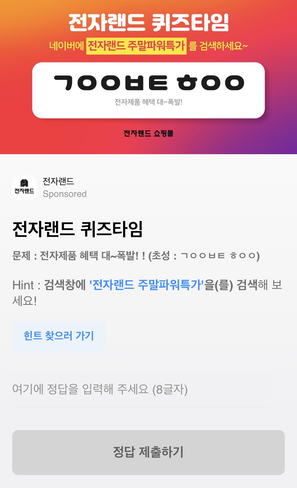 Hint : 검색창에 '전자랜드 주말파워특가'을(를) 검색해 보세요!