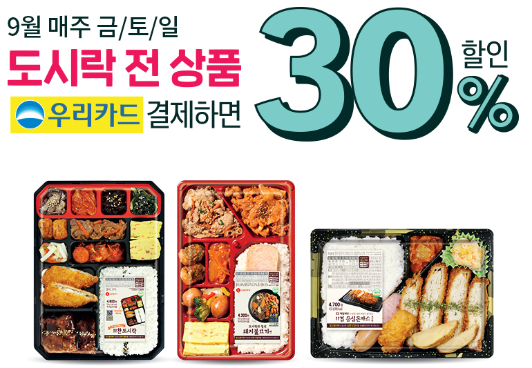 2. 9월 매주 금/토/일 우리 카드 결제 시 도시락 30% 할인
