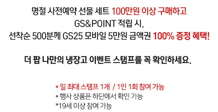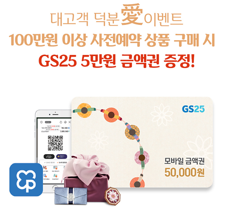 선착순 500분께 GS25 모바일 5만 원 금액권 100% 증정