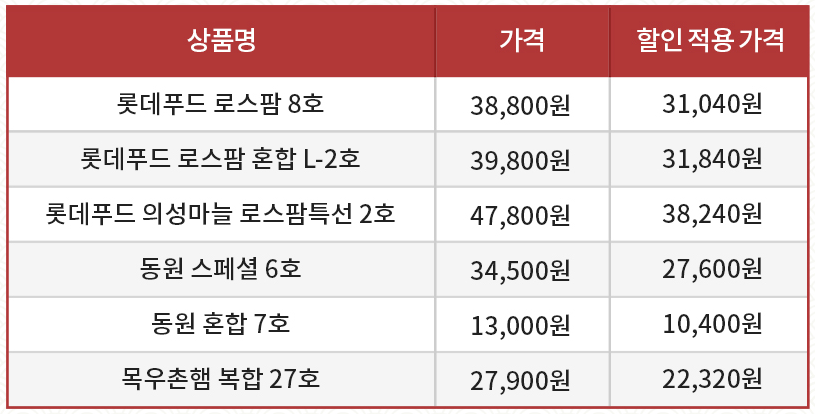 농협카드나 하나카드로 위의 선물세트를 구매하면 20% 할인을 해준다고 합니다.