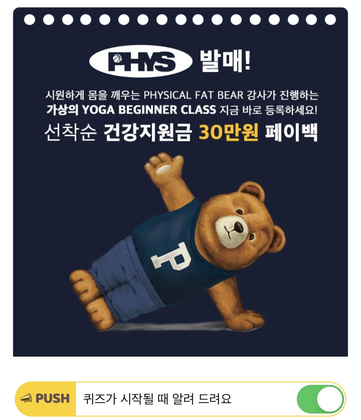피지컬에듀케이션뎁트의 팻 베어(FAT BEAR)가 운영하는 가상의 요가학원의 이름은 OOOOOOOO 입니다.