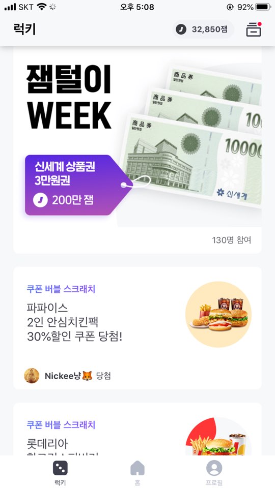 그래서 잼 털이 week로 잼을 스크래치 게임으로 현금으로 바꿔주는 이벤트를 하는데,