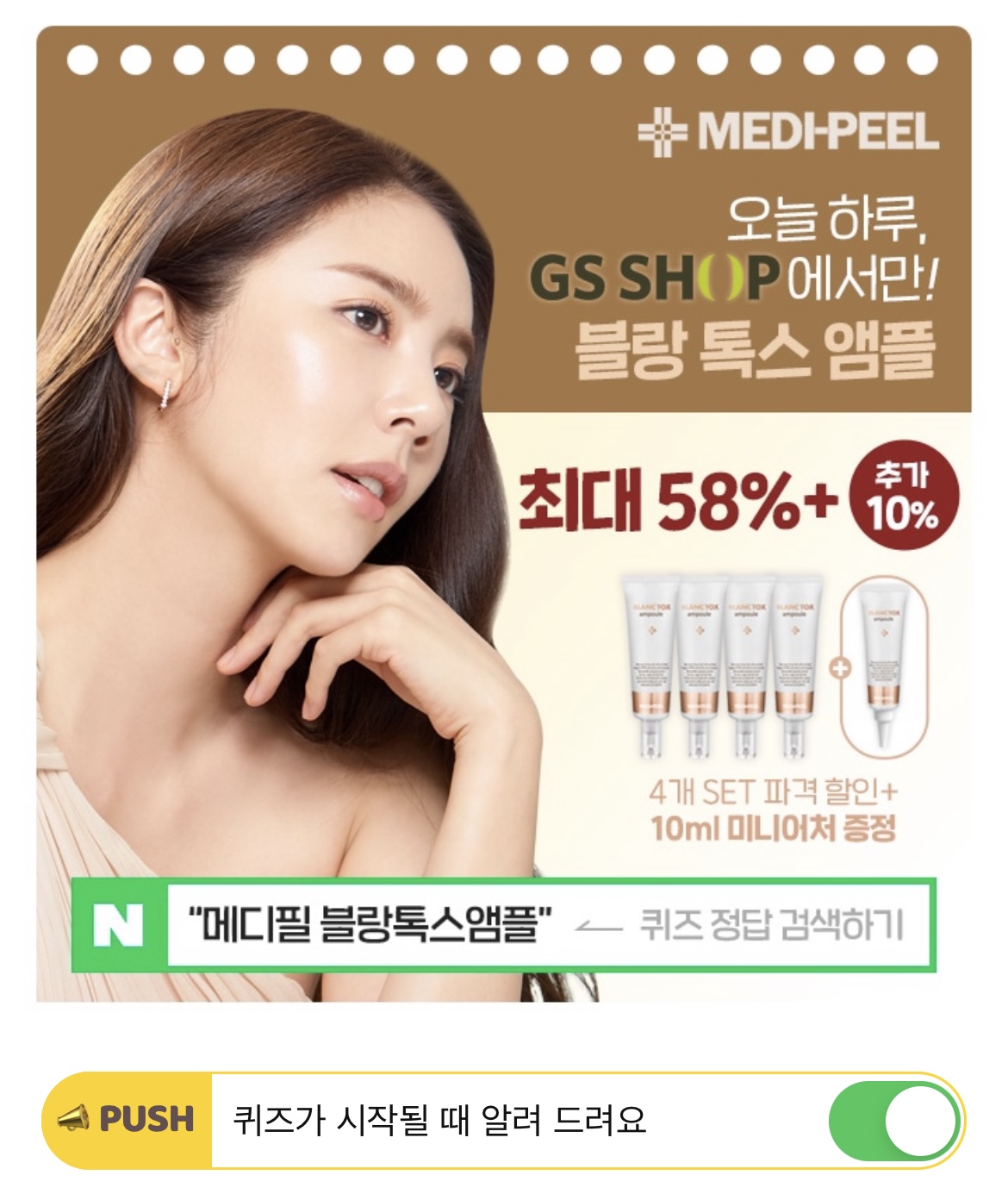물광으로 유명한 메디필 블랑 톡스 앰플은 미백, OO 이중 기능성 제품입니다. 여기서, OO에 들어갈 단어는 무엇일까요?