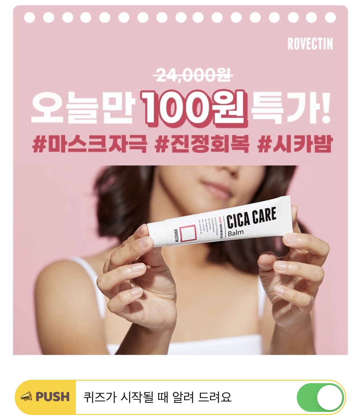 2월 24일, 오늘은 로벡틴 시카 케어 밤 OOOOO원 정품을 100원에 득템할 수 있습니다. OOOOO에 들어갈 숫자는 무엇일까요?