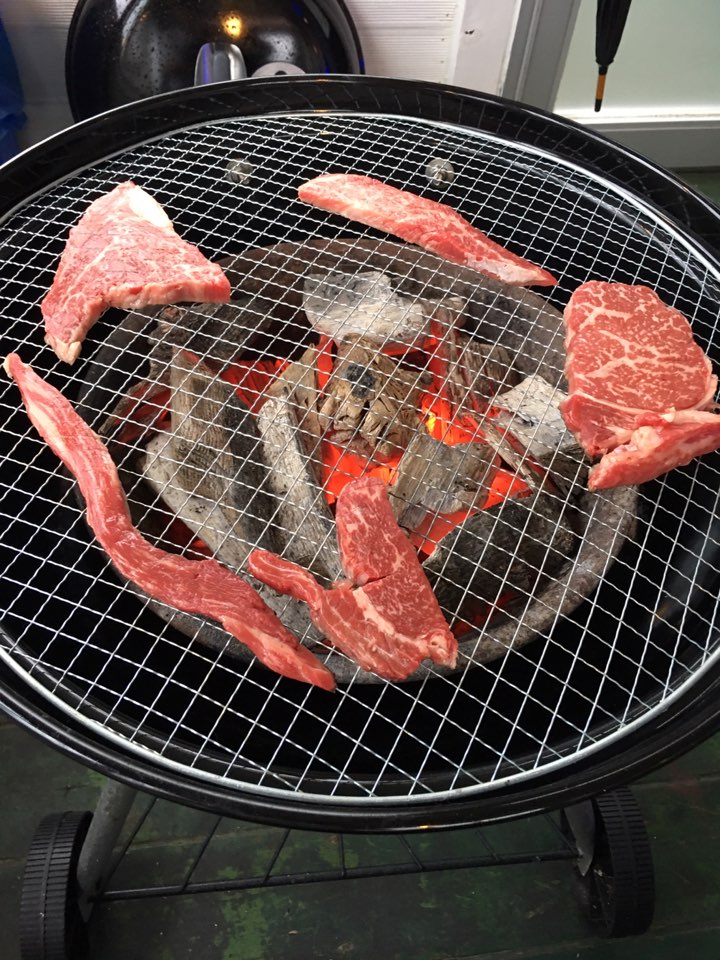 휴가에서는 숯불에 고기죠.