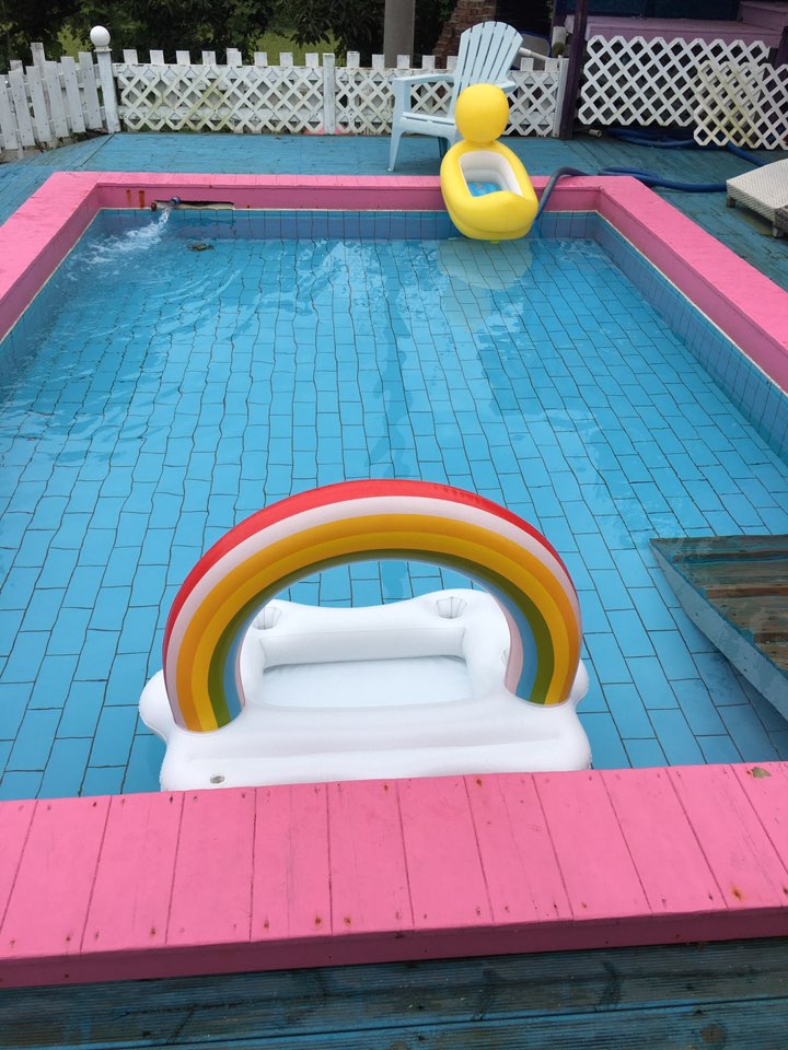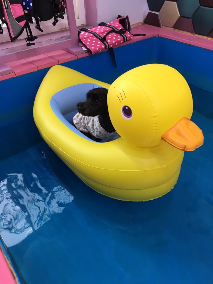 더울 땐 밖에서도 수영을 할 수 있게 해놓았는데 비가오고 흐릴때는