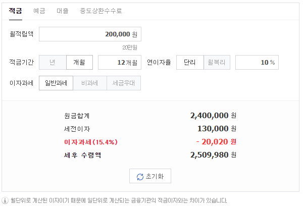 최대 10%로 일 때 이자를 네이버 계산기로 계산을 해보면