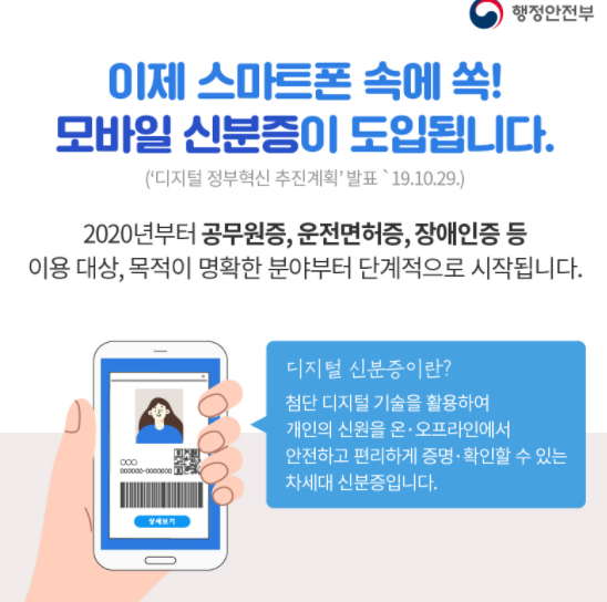 2020년부터 공무원증, 운전면허증, 장애인증 등 이용 대상, 목적이 명확한 분야부터 단계적으로 시작된다고 하는데,