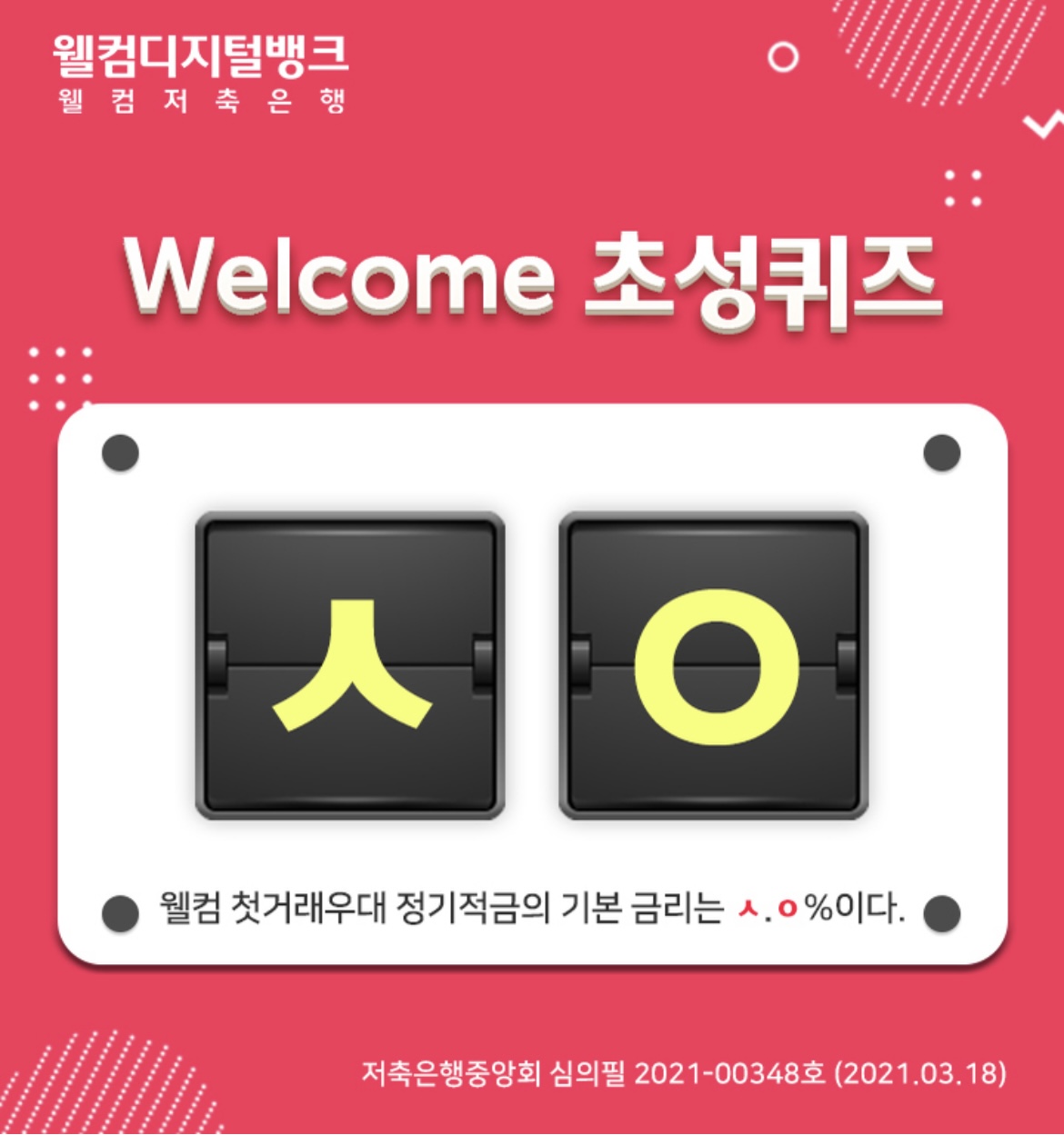 웰컴 디지털뱅크 초성퀴즈 ㅅㅇ