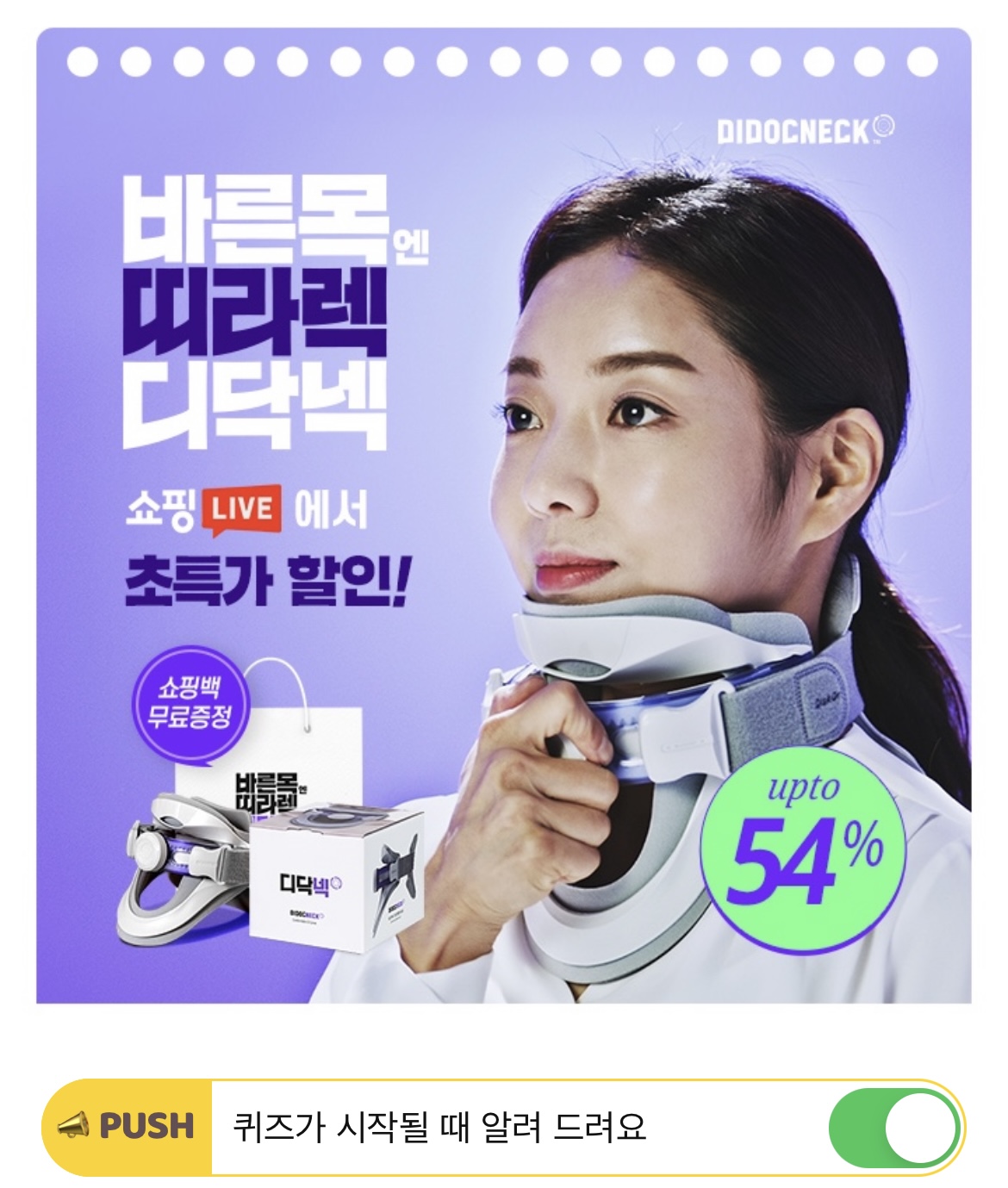 디닥넥은 굽은목을 바르게 잡아주어 좋은 자세를 만들어줍니다. OO OOO 디닥넥 착용으로 바른목 습관을 가져보세요. OOOOO은 무엇일까요?