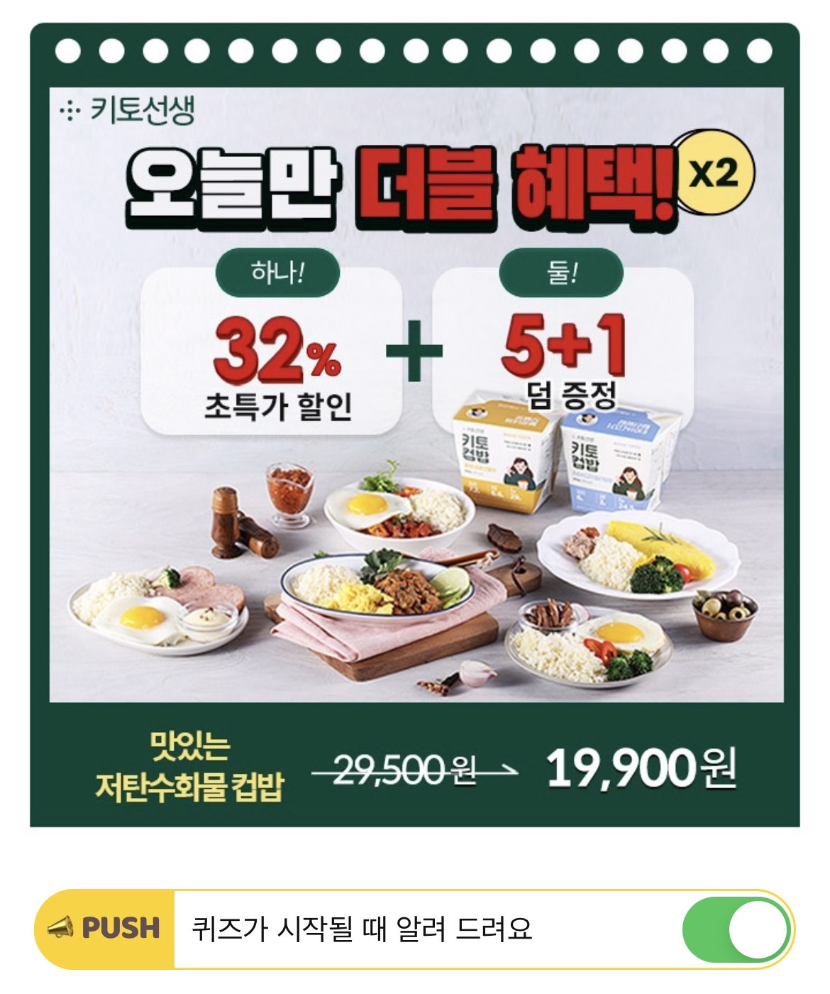 전자레인지에 'O'분만 데우면 간편하게 저탄수화물 식사를 할 수 있는 키토선생 컵밥은 직장인들의 점심시간을 크게 절약해줘서 많은 사랑을 받고 있습니다. 빈칸에 들어갈 숫자는 무엇일까요?
