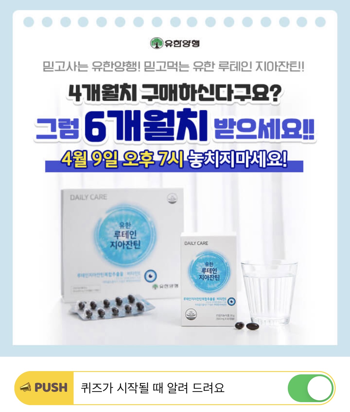 유한양행 루테인지아잔틴은 OO OO로 황반전체를 채워주는 캡슐입니다!