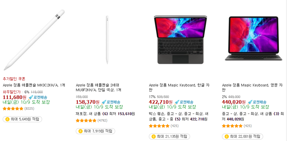 현재 쿠팡에서는 애플 브랜드 위크 할인을 하고 있습니다.