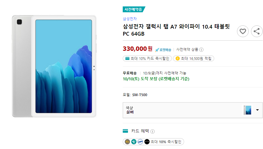 오늘부터 갤럭시 탭 A7을 사전예약하네요.