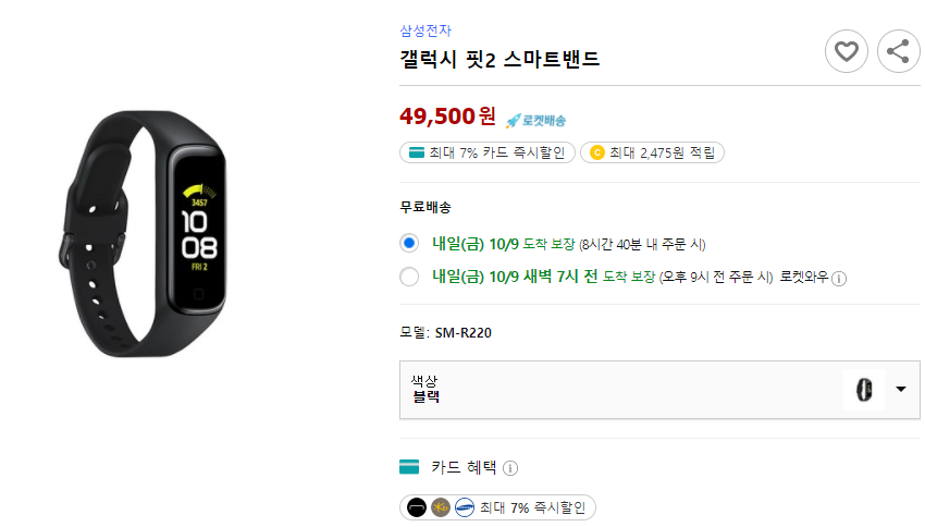 갤럭시 핏 2 스마트밴드 카드 즉시 할인 7%