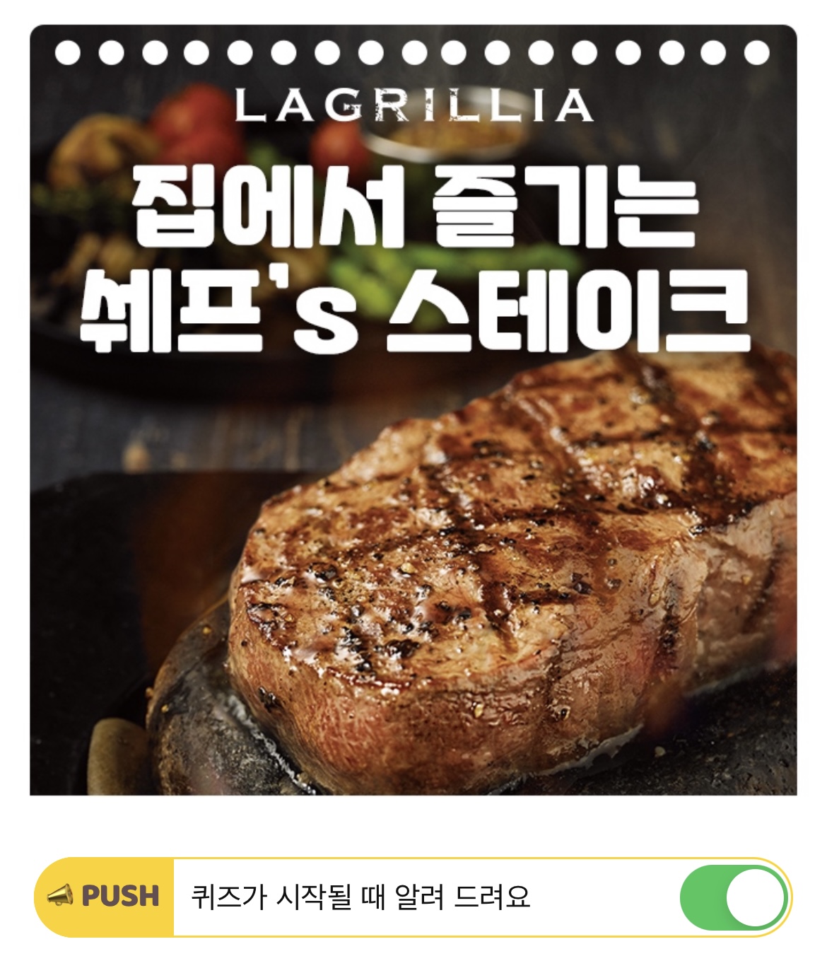 라그릴리아의 밀키트는 대량생산이 아닌 주문수량만큼 OO가 직접 제조하여 배송되는데요. OO에 들어갈 단어는 무엇일까요 ?