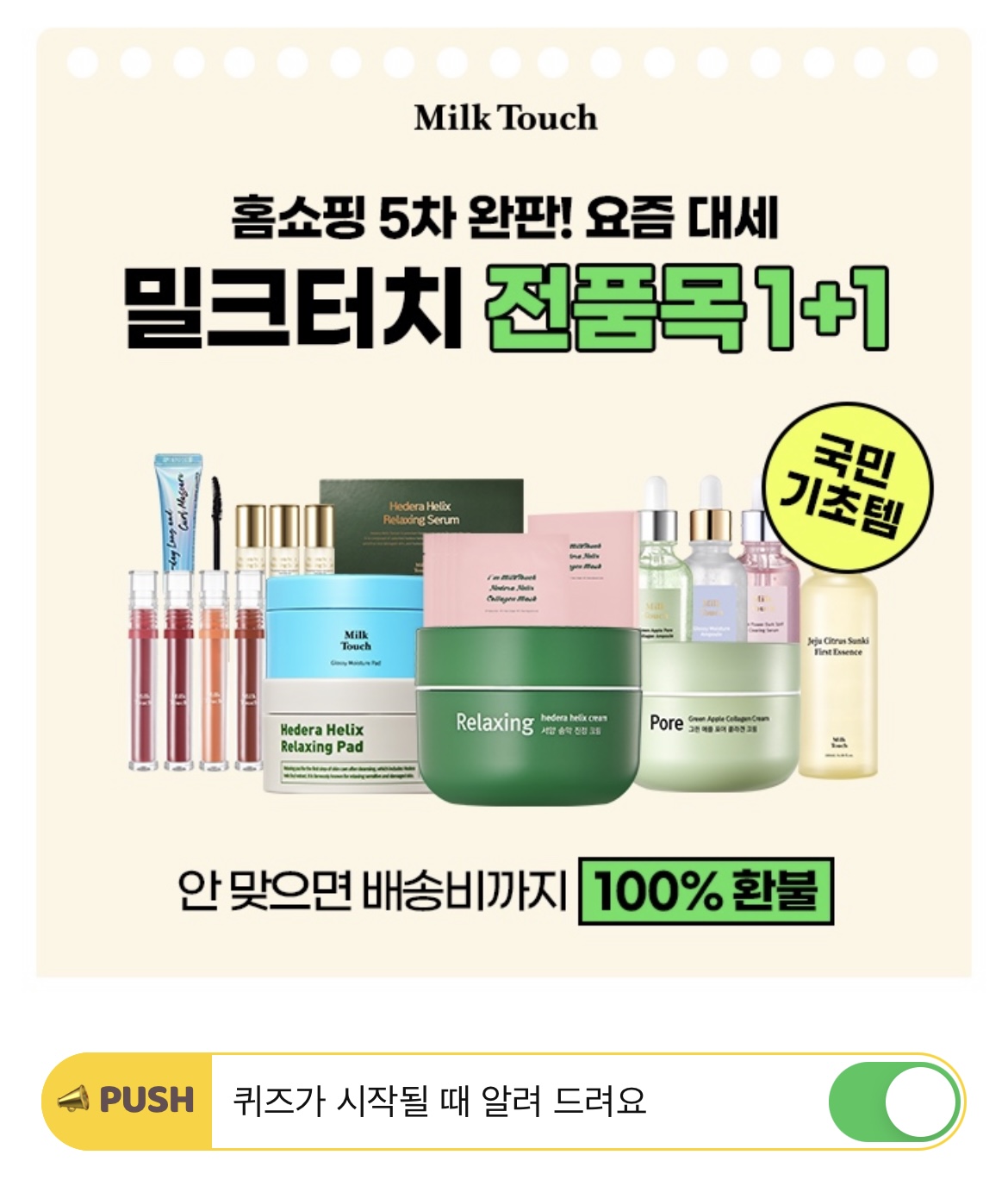 홈쇼핑 완판을 기록한 밀크터치 #기적의진정크림은 특허받은 서양송악의 힘으로 OOO 즉각 개선을 통해 예민하고 민감해진 피부를 진정시주는 것으로 알려져 있습니다. OOO에 들어갈 단어는 무엇일까요? (초성힌트 : ㅂㅇㄱ)