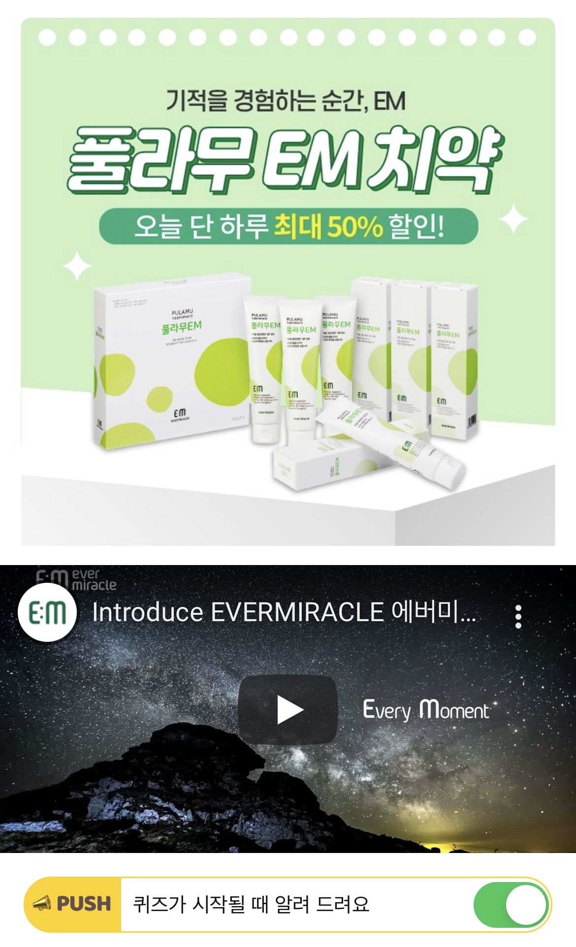 우리 아이부터 남편, 엄마와 아빠 모두 건강하게 사용할 수 있는 국내 유일 정품 OO 에버미라클! OO은 유용미생물군의 약자로서 광합성균, 유산균, 효모균을 조합/배양한 복합체로 에버미라클은 OO을 통한 친환경 사회건설이라는 목표를 가진 기업입니다.