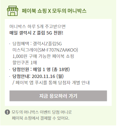 머니박스 하루 5개 주고받으면 매일 갤럭시 Z플립 5G 천 원