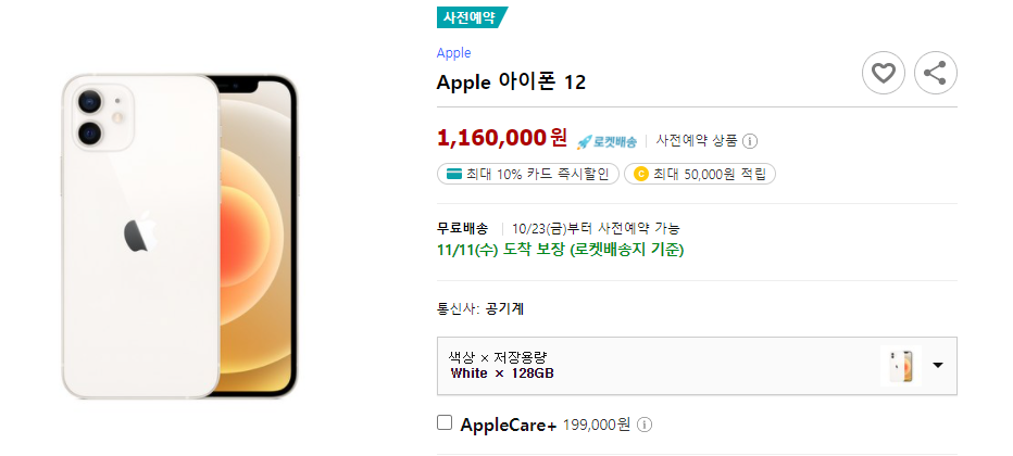 아이폰12 128G 쿠팡 사전예약