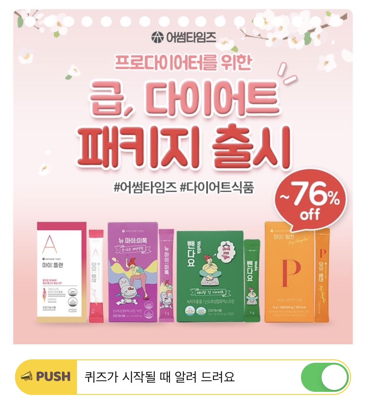 어썸타임즈 다이어트대란전에는 한정수량 패키지를 최대 76% 할인된 가격에 구매하실 수 있습니다. 한정수량 패키지 중 OOO OOOO패키지는 얼굴이 자주 퉁퉁 부어 v라인이 되고 싶어 하시는 분들에게 추천드립니다. 빈칸에 들어갈 단어는 무엇일까요? (초성힌트 : Vㄹㅇㅍㄹㅈㅌ)