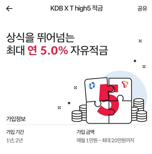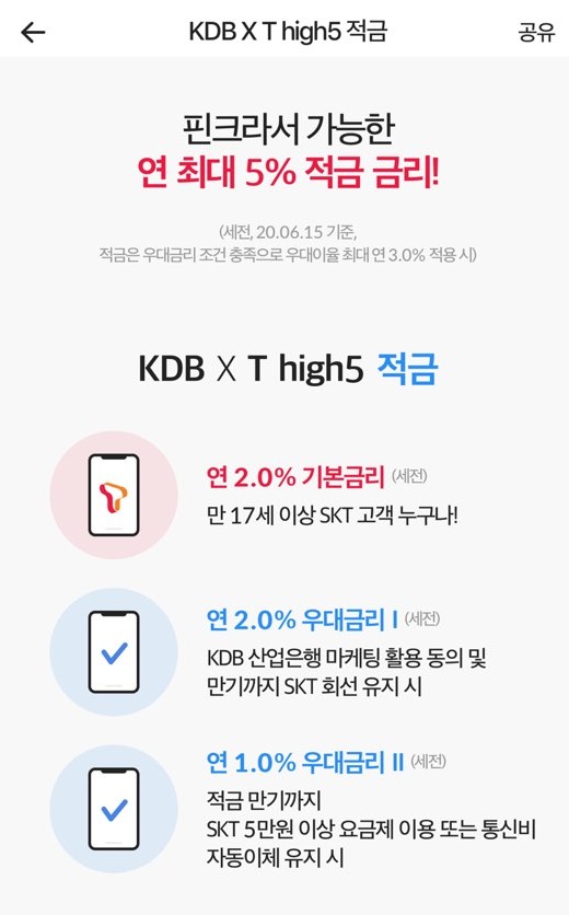 KT와 KDB산업은행에서 진행하는 T이득통장과 5% 적금.