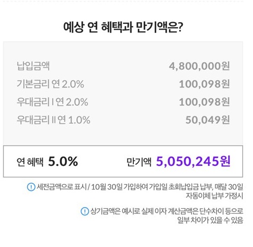 설명을 보면 연 5%에 2년 월 최대 20만원까지가능합니다.