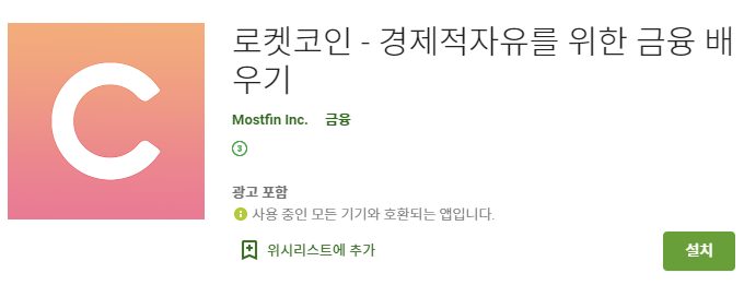 지난번에 소개해드린 로켓코인이라는 어플입니다.
