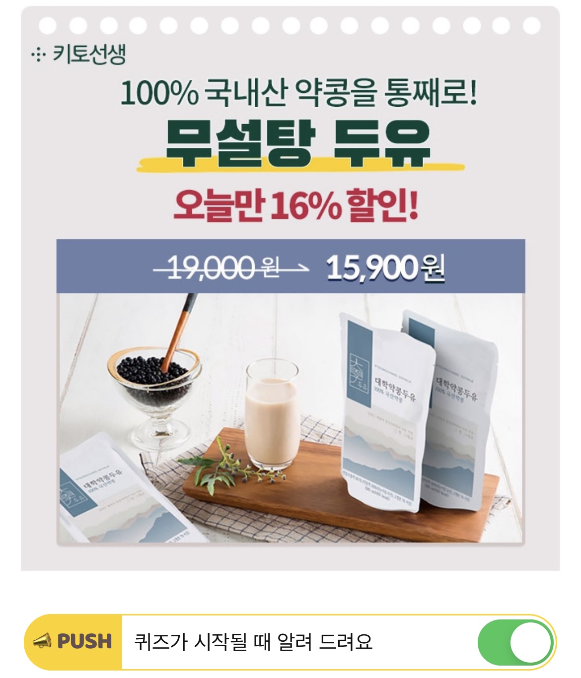 두유에 일반적으로 쓰이는 대두에 비해 '약콩'은 항산화성분이 100배 높아 건강에 더 좋습니다. 대학약콩두유는 100% OOOO만을 넣어 풍부한 영양과 진한 맛을 자랑하는데요. 빈칸에 들어갈 단어는 무엇일까요? (힌트: ㄱㅅㅇㅋ)