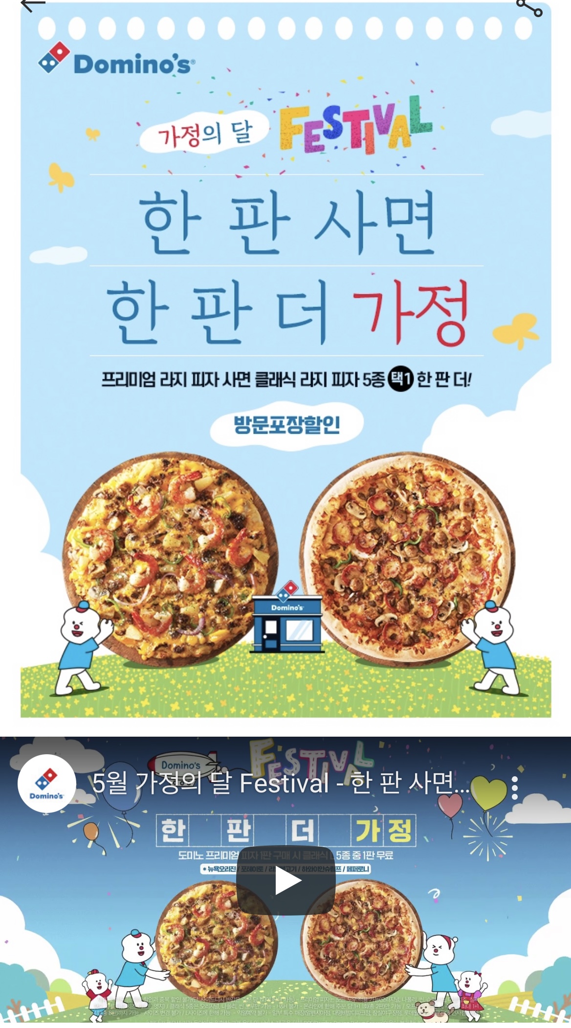 가정의 달을 기념하여, 5/10~5/16 단 일주일간 도미노 ‘한 판 더 가정 페스티벌’이 진행됩니다.