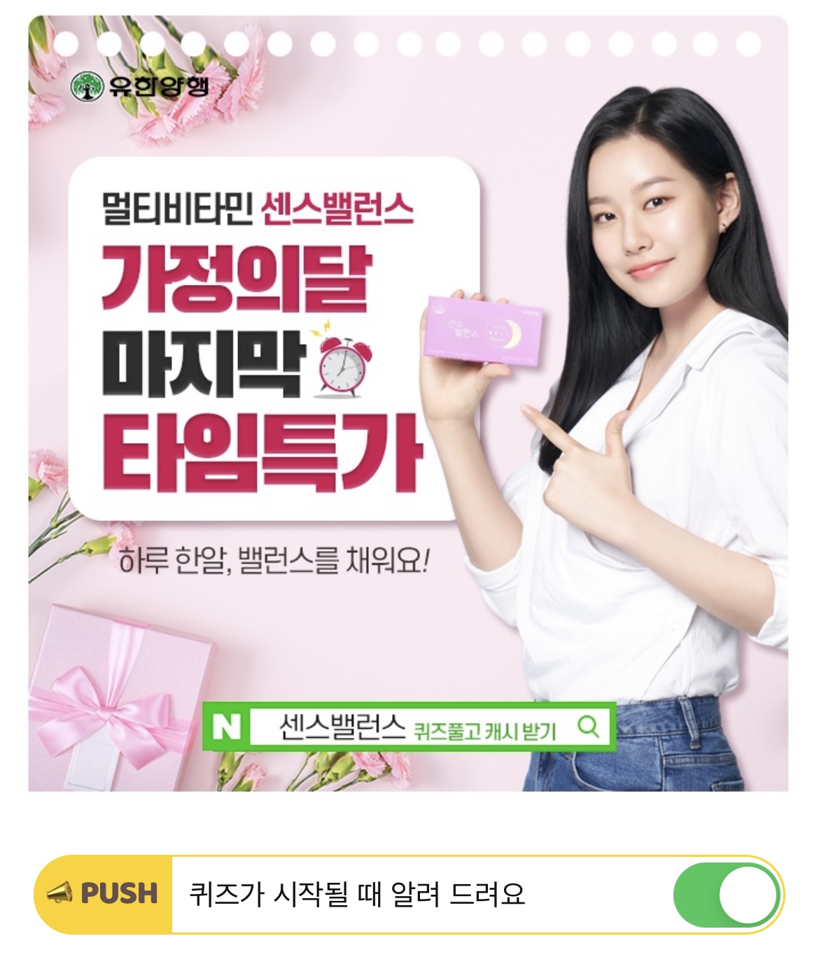 유한양행 센스밸런스는 OO이 먹기 좋은 멀티비타민, 미네랄 건강기능식품으로, 가정의 달을 맞아 유한양행 본사 직영 몰에서 마지막 특가 이벤트를 진행하고 있다. 빈칸에 들어갈 단어는 무엇일까요?