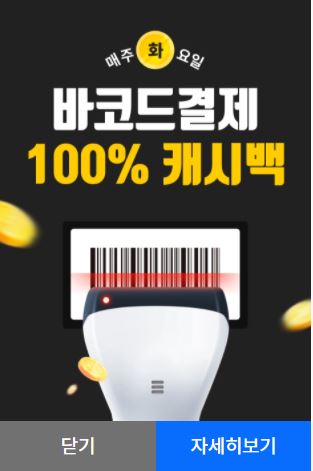 - 11월 3일, 10일, 17일, 24일 바코드 결제시 100% 캐시백.